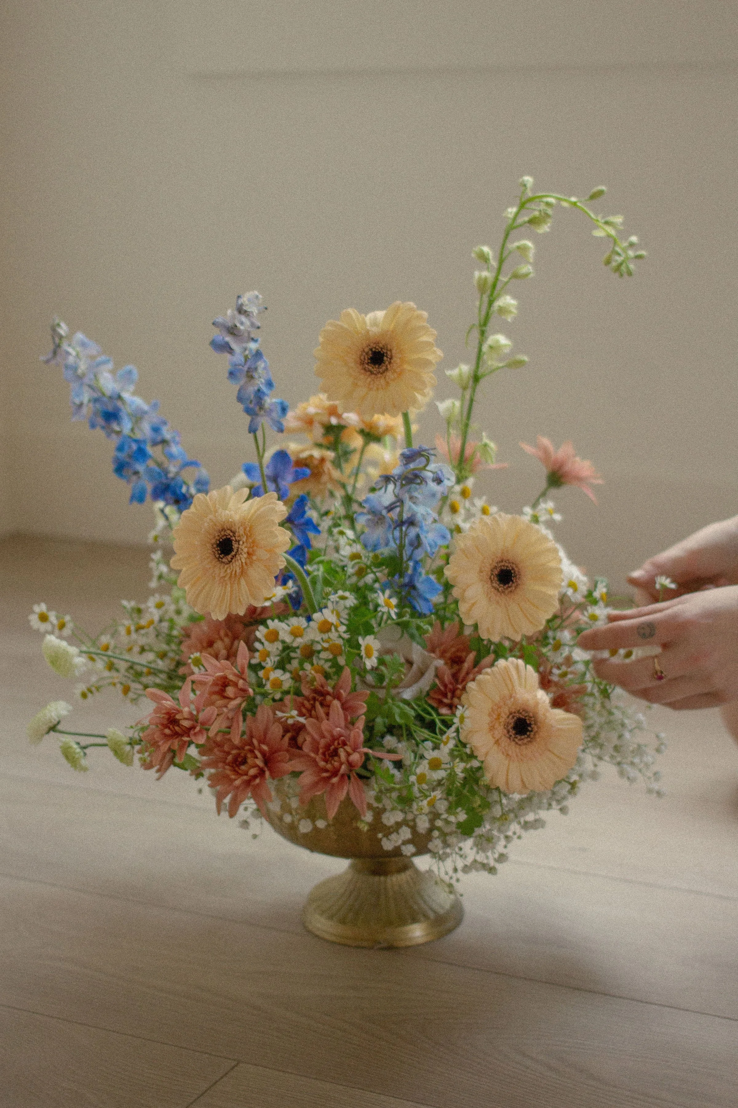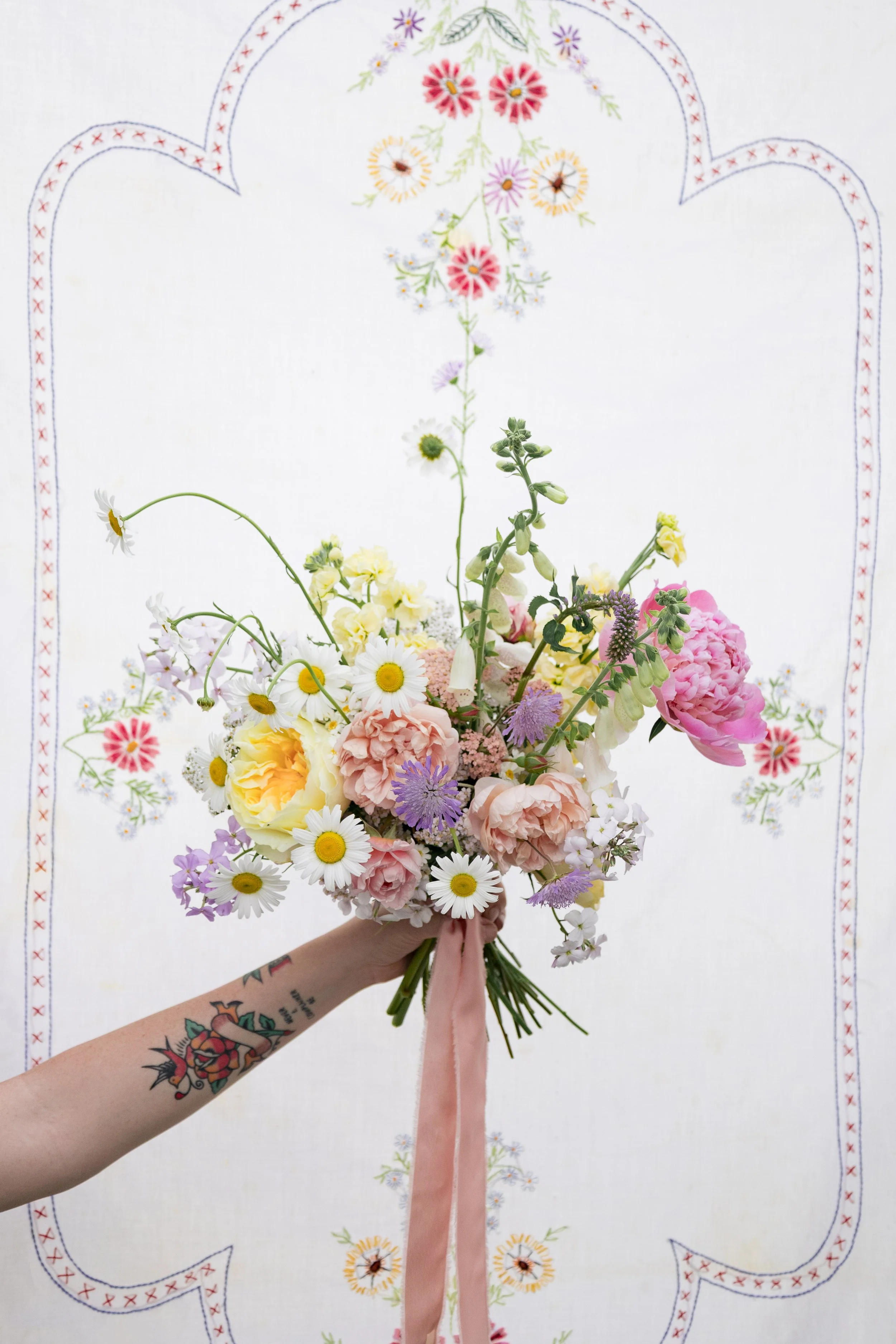 Bloomy and organic is our signature style, each bouquet is tied with a silk ribbon.